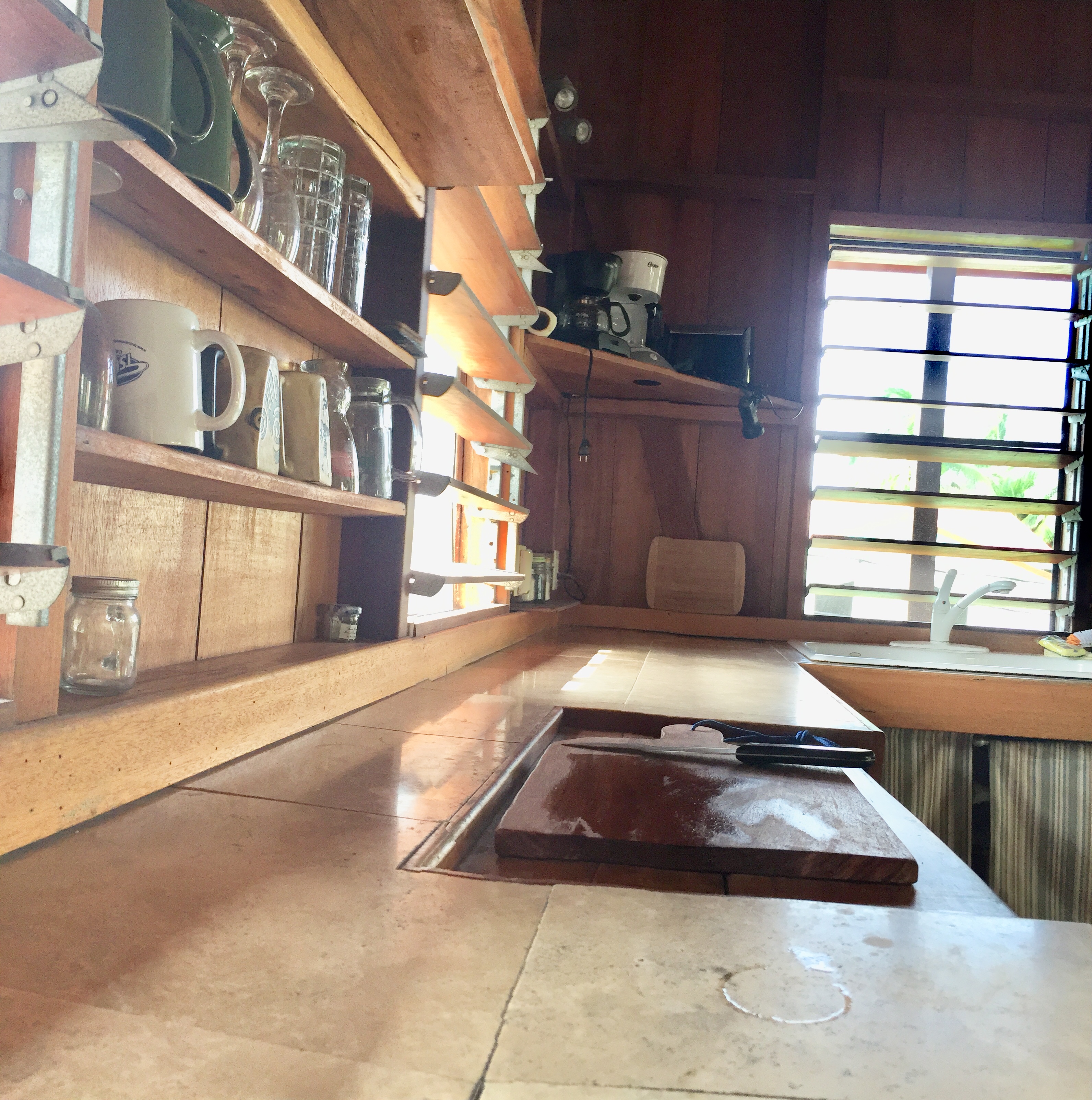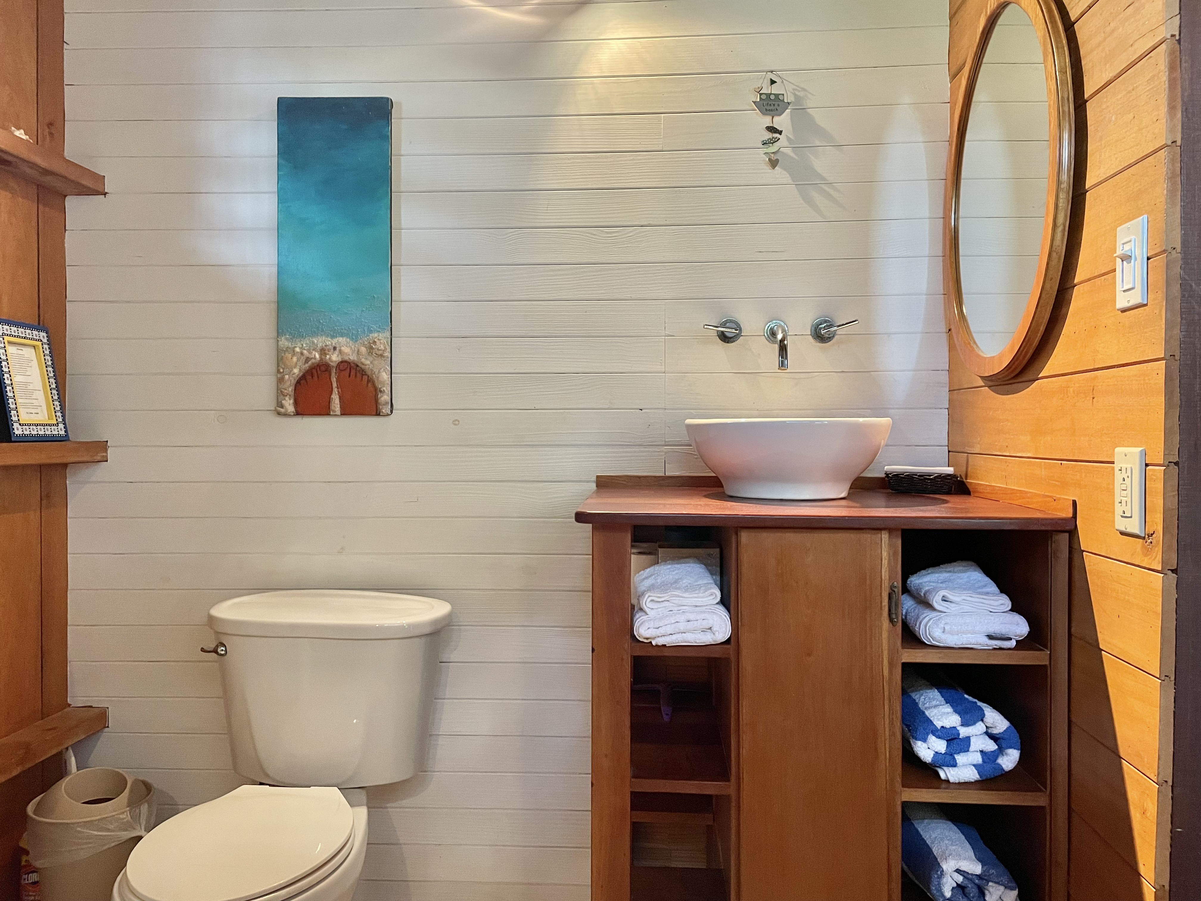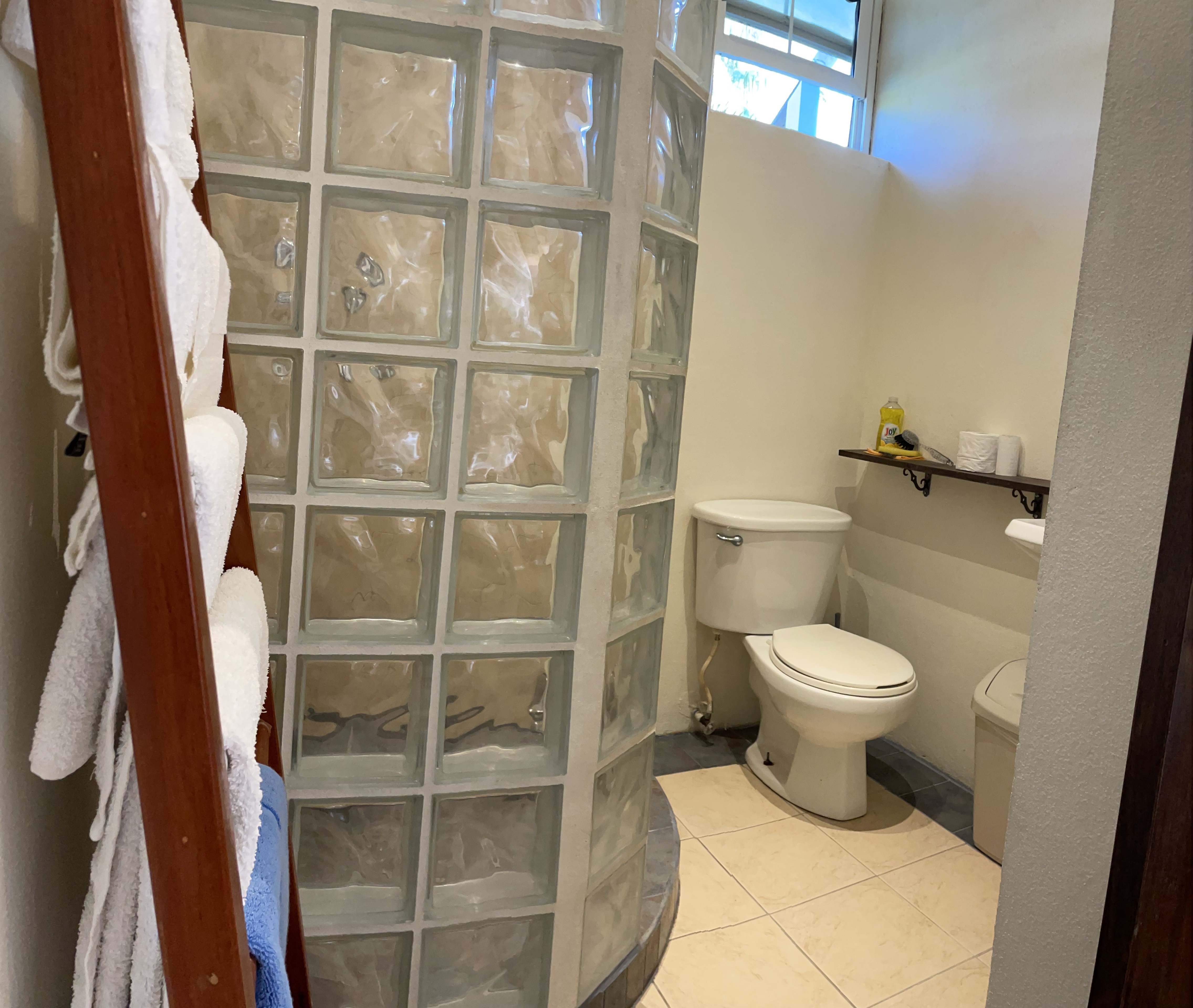 It is a small house, built high up. The main house is on the second floor, with the large all-in-one spacious living and dining and kitchen area. There are large double doors that open up to the bedroom and off that is the ensuite bathroom. There is AC in the bedroom only so you can close it off if needed or leave them open for the breeze and air if not. The bathroom has hot and cold running water, and a spacious walk in shower. There is Internet and local Cable TV which has 70 US TV channels including sports and news. There are balconies on three sides with chairs and hammocks everywhere. Inside-outside living is the way here!